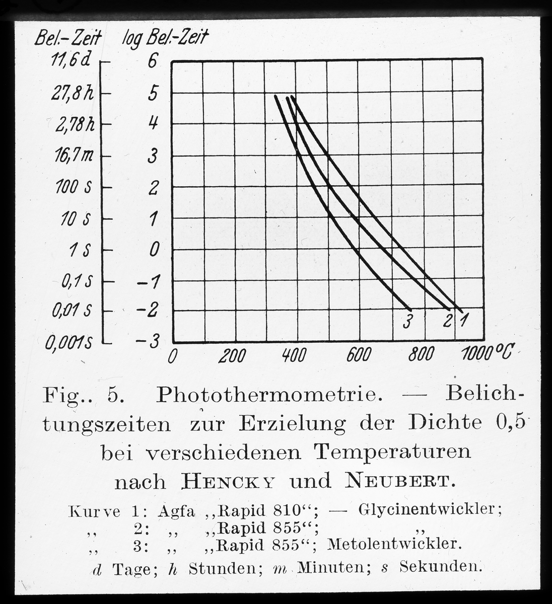 Fototemperaturmätning - exponeringstider då densiteten uppnås till 0,5 vid olika temperaturer.