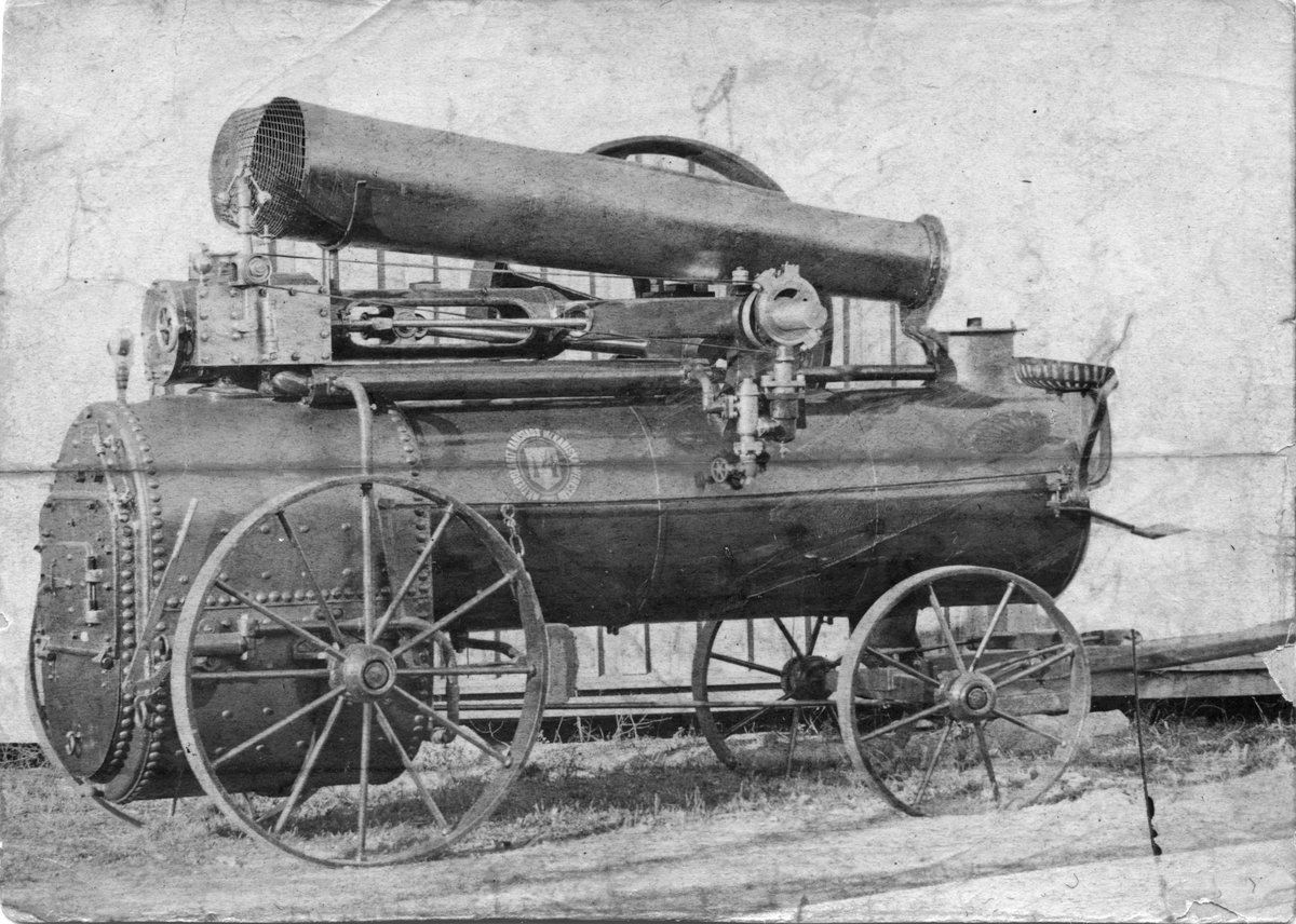 Karlstads Mekaniska Verkstad, Karlstad. Ånglokomobil från 1875, nr. 14. Fotografiet har tillhört ingenjör Erik Gustaf Person Wern (f. 1855) som var ritare och konstruktör vid verkstaden mellan 1872-1880.