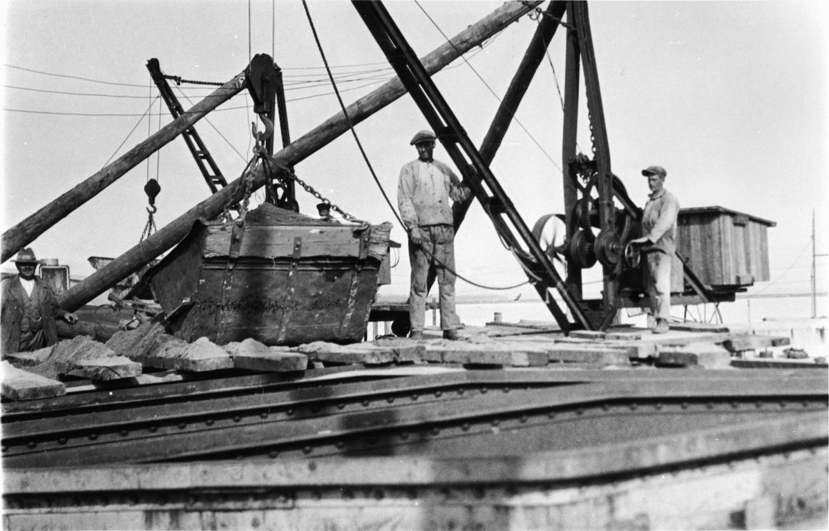 Byggherre: Byggnadsaktiebolaget Contractor, Stockholm. Betongfartyg till kaj.