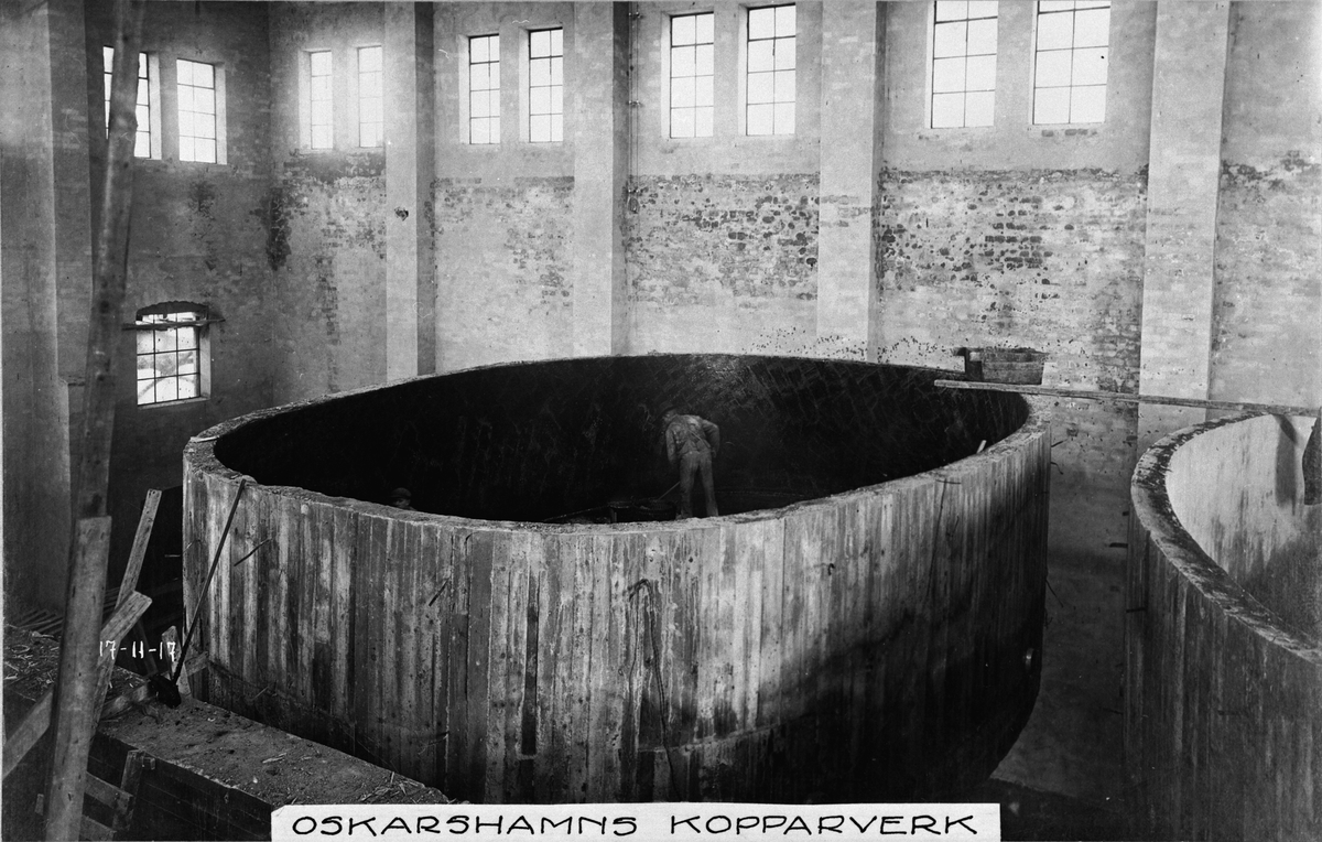 Byggherre: Byggnadsaktiebolaget Contractor, Stockholm. Kopparverk. Lakerisumpar.