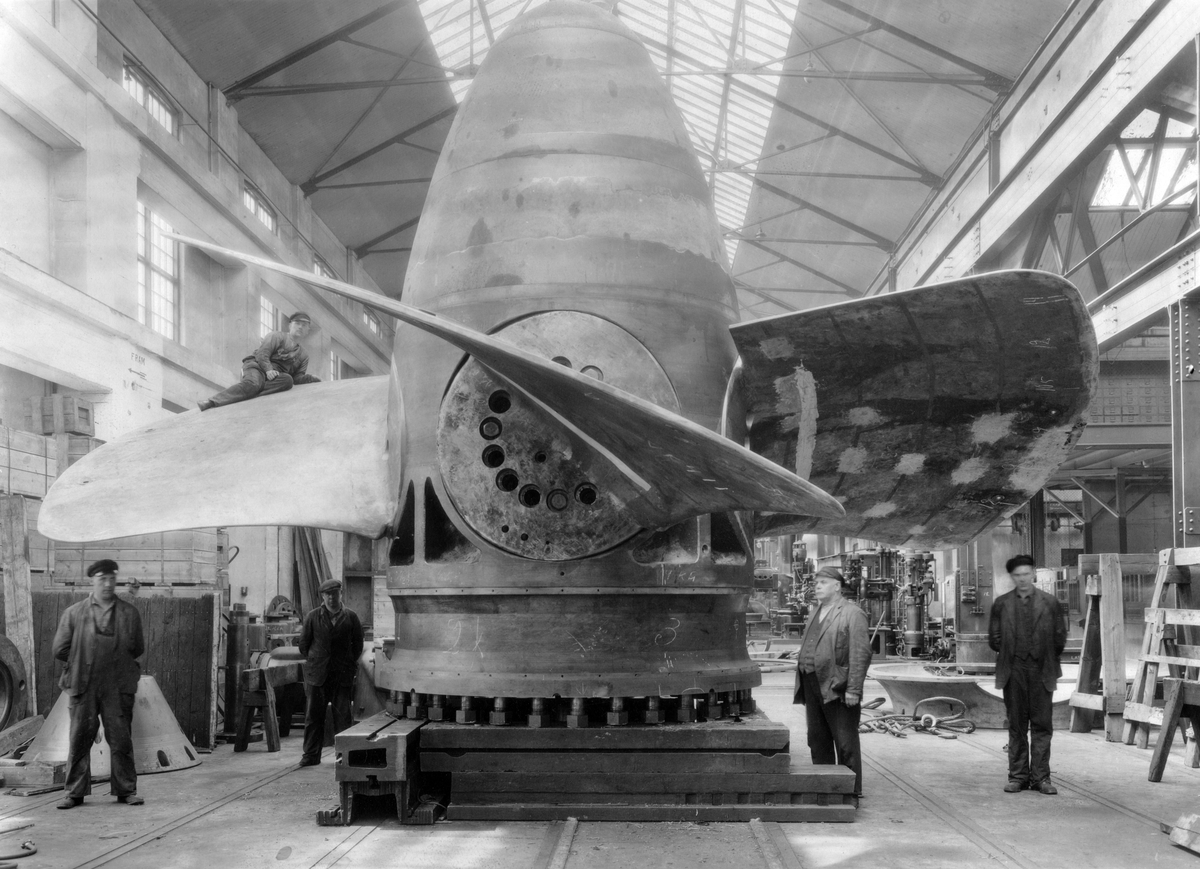 Elektriska maskiner. Löphjul, Vargö-turbinen. I monteringshallen vid AB Karlstads Mekaniska Werlstad i Kristinehamn.