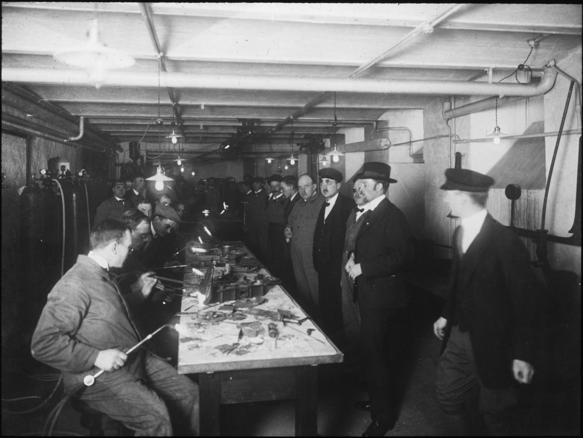 Ljusbild, forografi av demonstration vid verkstadsskola.
