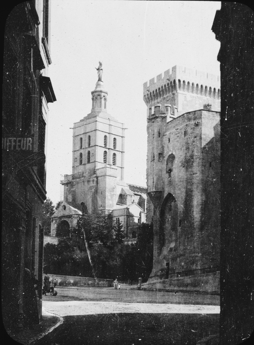 Skioptikonbild med motiv av Påvens Palats i Avignon.