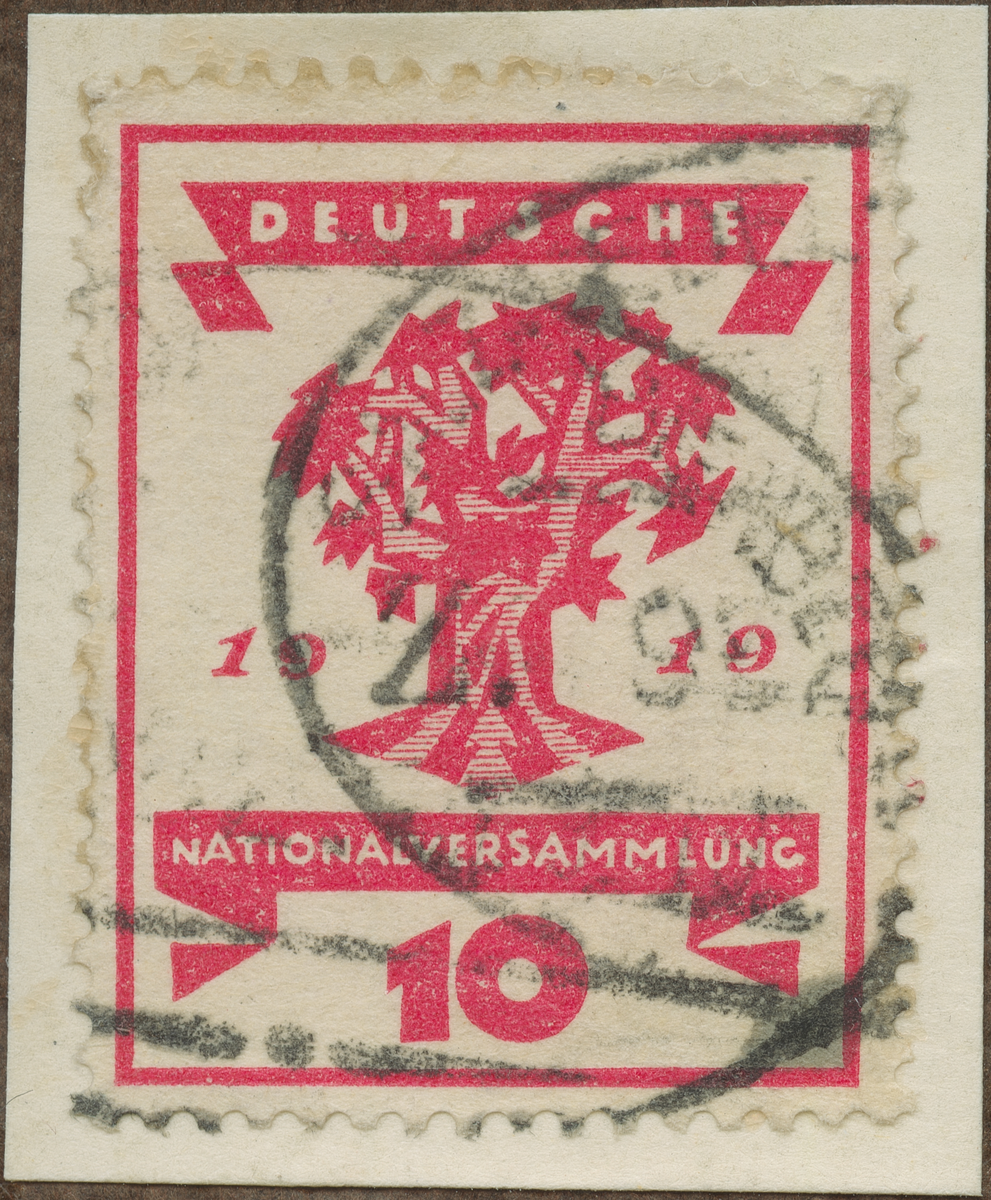 Frimärke från Tyskland, 1919. Motiv av Ekstubbe med nya grenar -Symbol för återväxt- Nationalförsamlingen i Weimar.