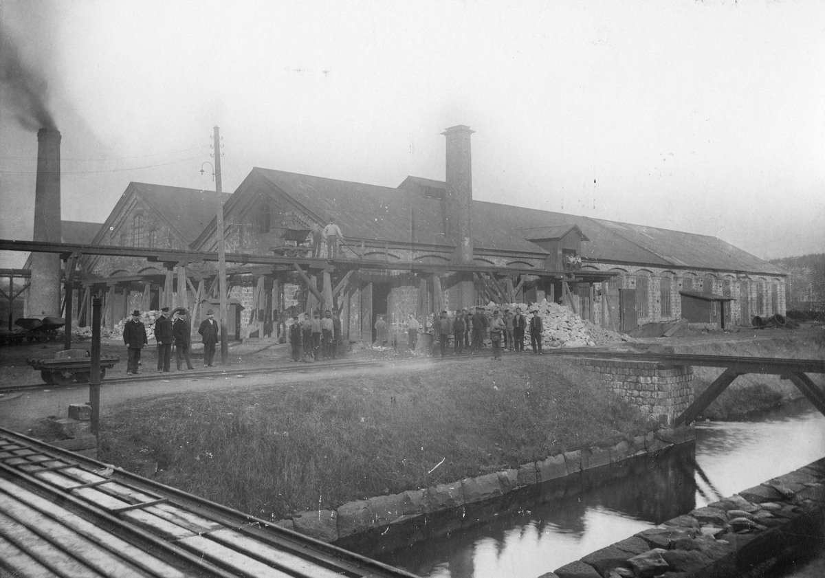 Varmvalsverket vid Bångbro Rörverk omkring 1904. Från vänster: ingenjör Per Gust. Särnström, Jan Erik Jansson, Nils Anders Melander samt verkmästaren Johan Lind.
