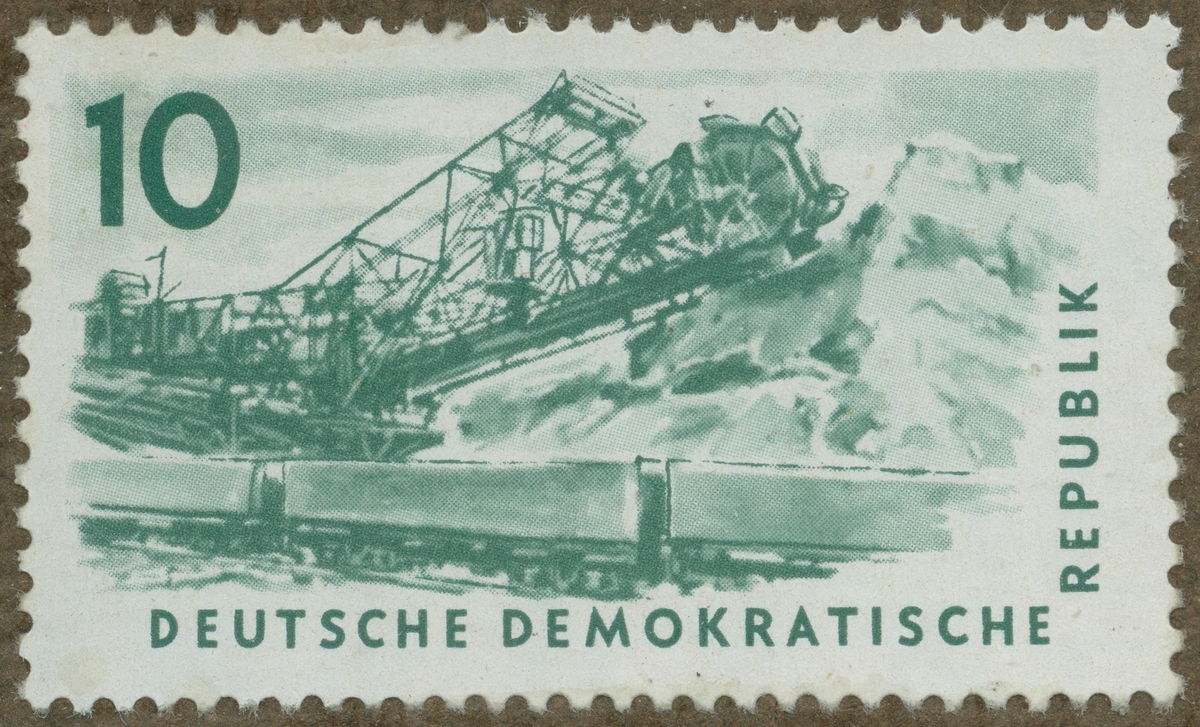 Frimärke från Öst Tyskland, 1957. Motiv av maskin för brytning av brunkol.