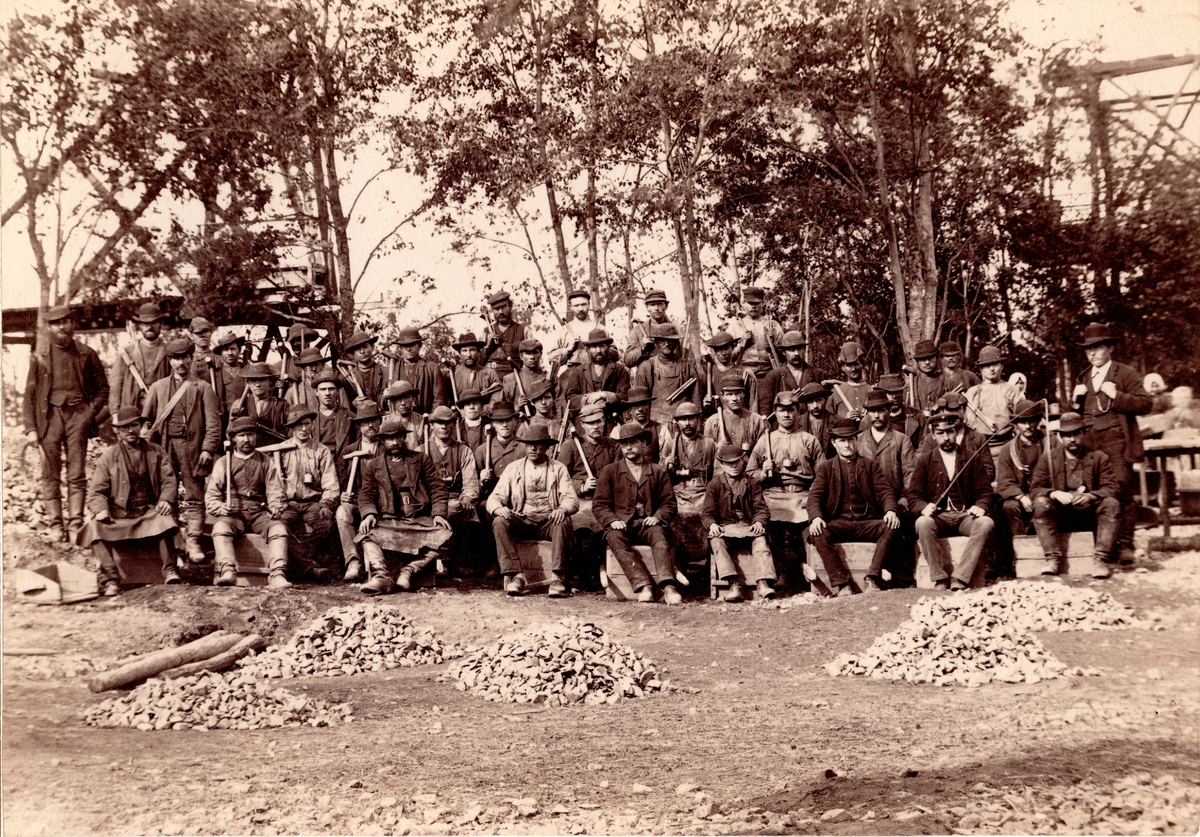 Arbetare vid Kärrgruvan, Norrbärke sn, Dalarna vid slutet av1800-talet.