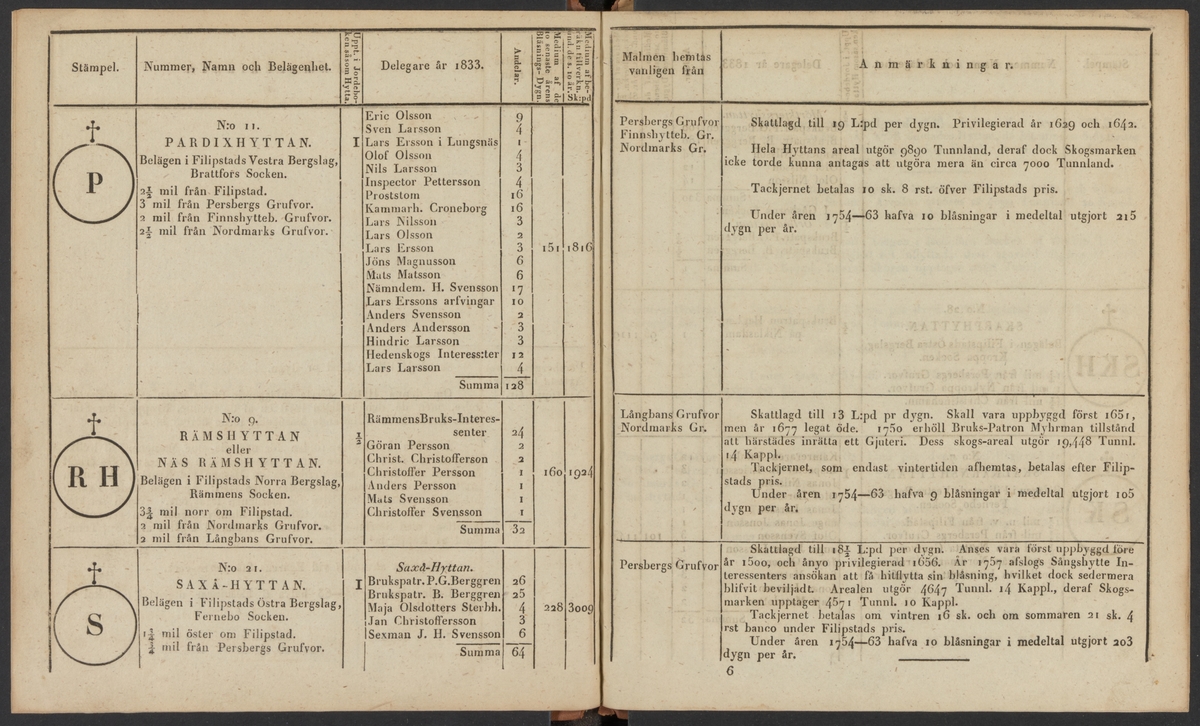 Stämpelbok över hytterna inom Värmlands bergmästaredöme, upprättad år 1833.
