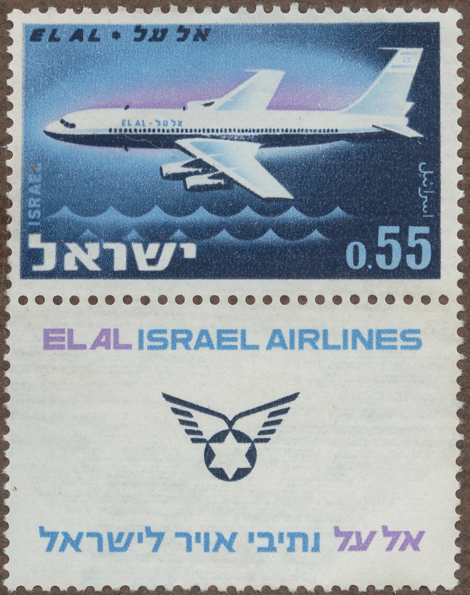 Frimärke från Israel, 1962. Motiv av 4-motorigt flygplan från "El Al: Israel Airlines" Flygpostmärke
