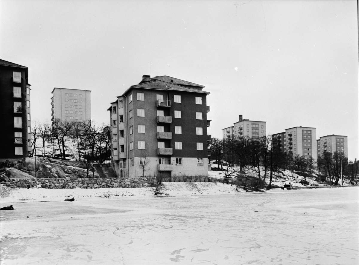 Byggherre: Byggnadsaktiebolaget Contractor, Stockholm. Vy över 1200 lägenheter som Contractor byggde för HSB. Arkitekt SAR Sven Wallander.