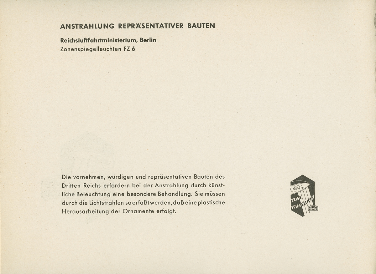 Bild ur boken "Zeiss Spiegellicht System Zeiss-Wiscott in der Architektur : eine Sammlung durchgeführter Beleuchtungsanlagen". Boken gavs ut av Berlin-Zehlendorf : Zeiss Ikon A.G., Goerzwerk, 1937.