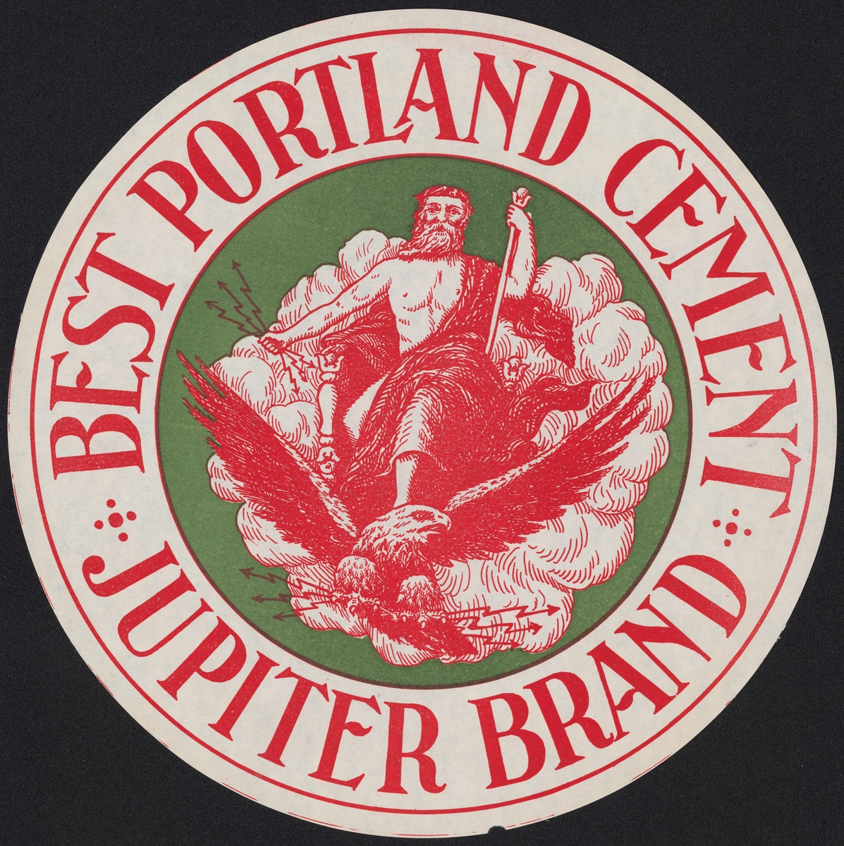 Fabriksmärke för cementpåsar. Jupiter Brand. Best Portland Cement.