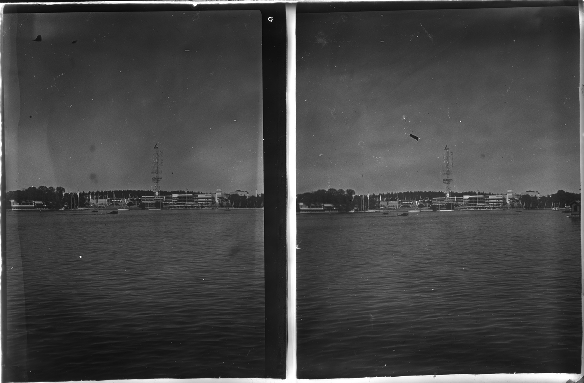 Stereonegativ med motiv av vy över Stockholmsutställningen 1930.