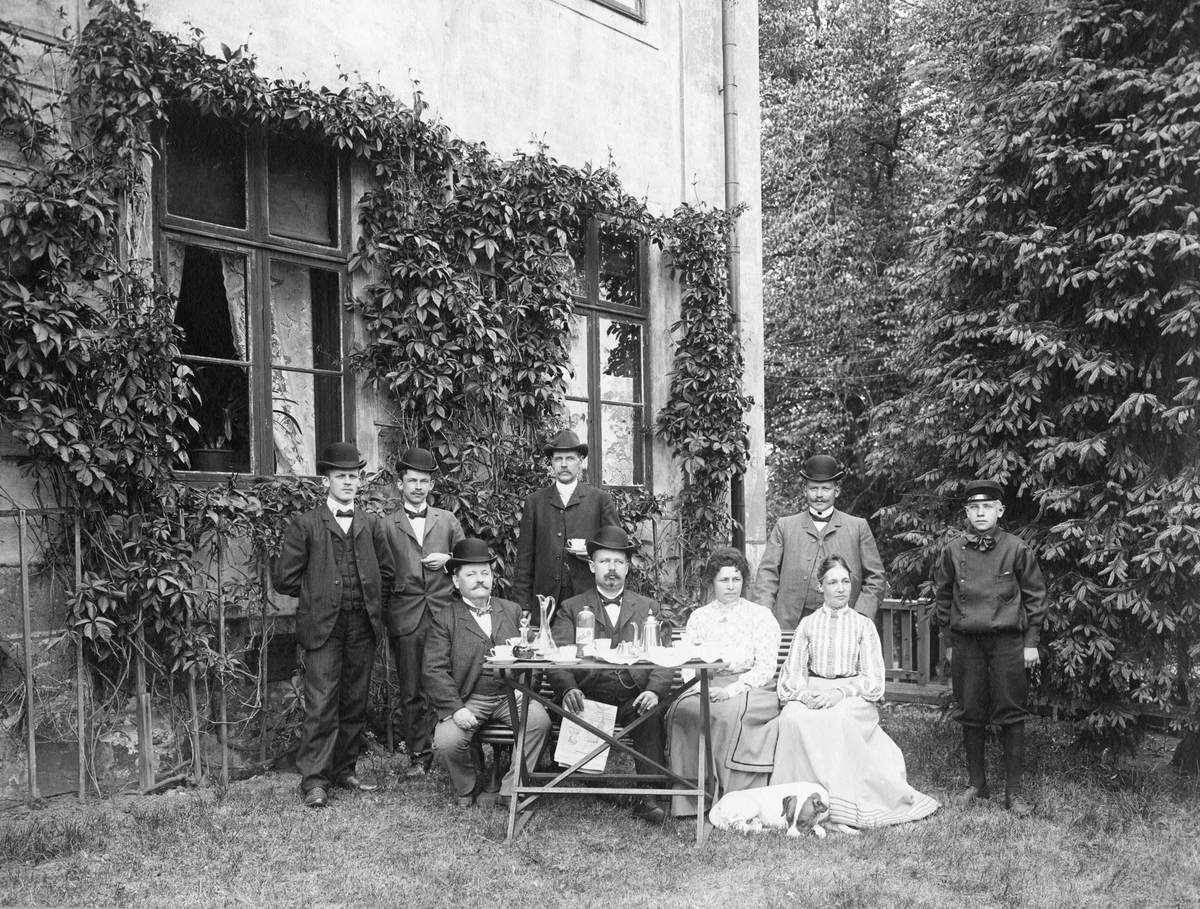 Motiv från Ramnäs Bruk, Västmanland, omkring 1900. Fika i trädgården.