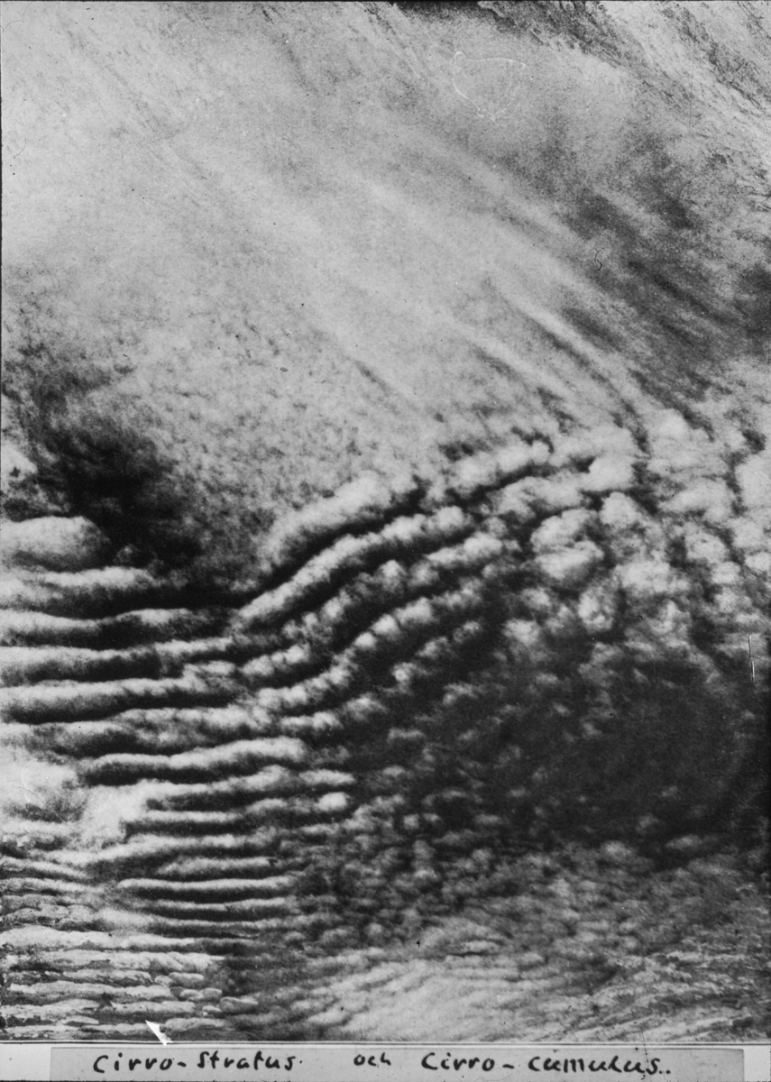 Skioptikonbild med motiv rörande olika typer av moln. Cirrus- Stratus moch Cirro- Culumus.