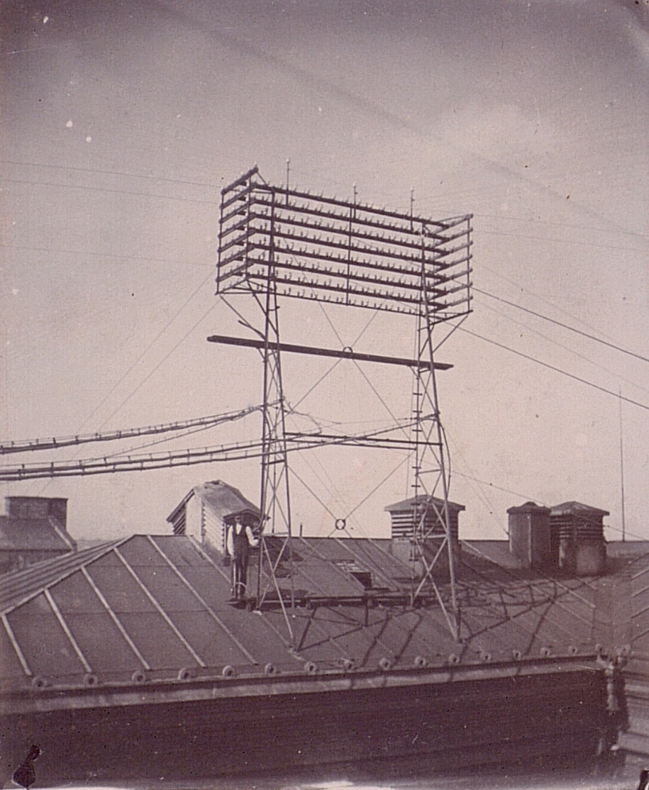 Malmö nät och stationer år 1890. Telefongalge monterad på tak.