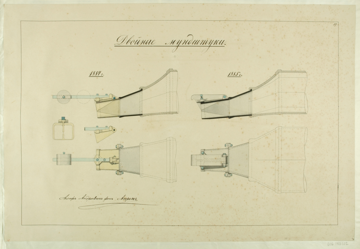 Skiss på ryska, ur boken med ritningar mm 1868-1887, av den svenske torvmaskinkonstruktören Aleph Anrep.
