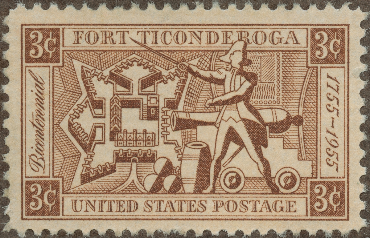 Frimärke från U.S.A., 1955. Motiv av Fästningen Ticonderoga 200-årsminne 1755-1955