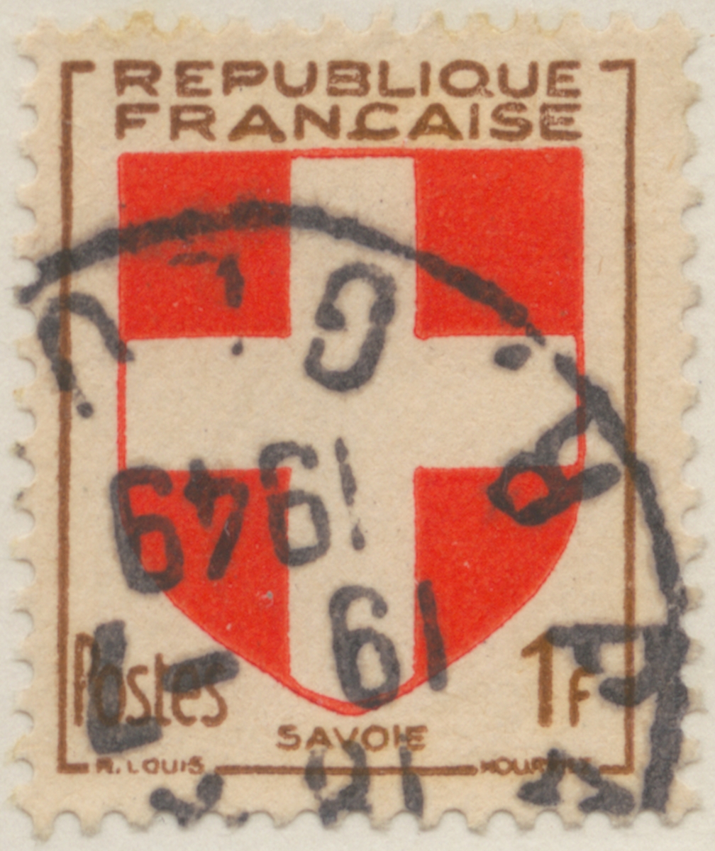 Frimärke från Frankrike, 1949. Motiv av Vapen: Savoie "-Serie: franska provinsers vapen-"