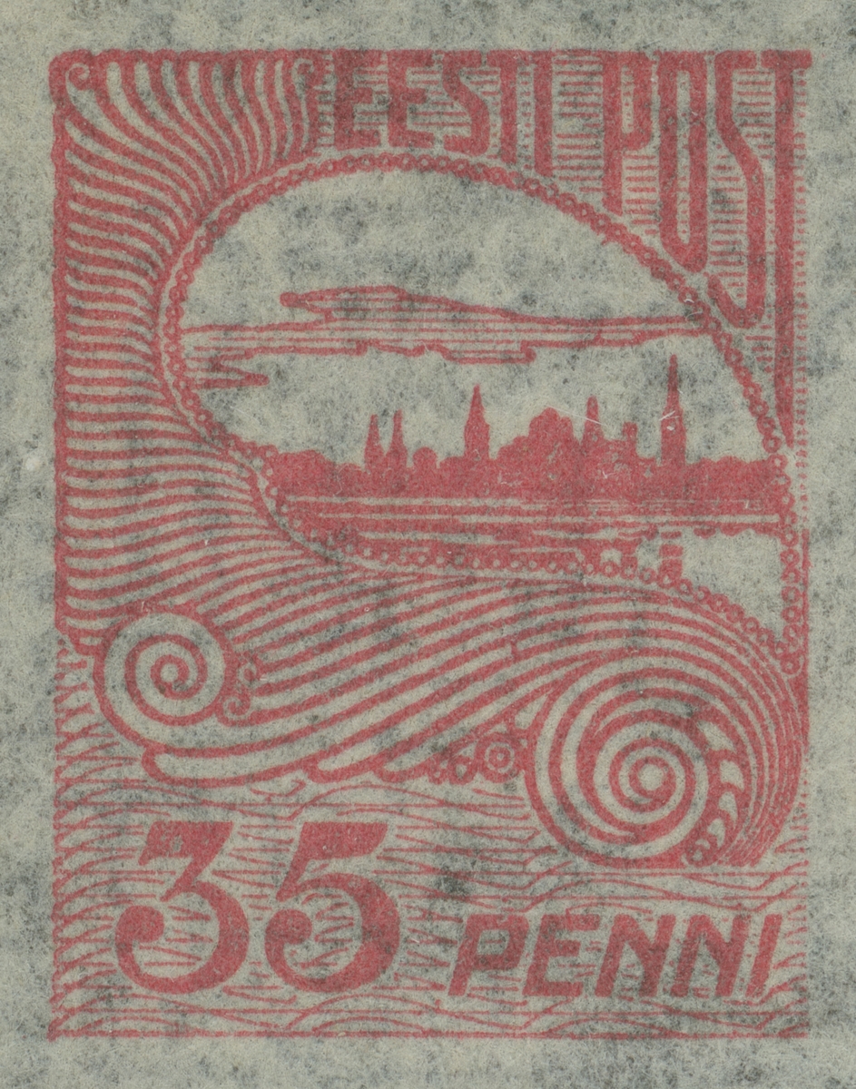 Frimärke från Estland, 1919. Motiv av Siluett av staden Tallin f.d. Reval
