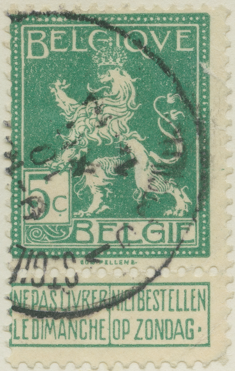 Frimärke från Belgien, 1912. Motiv av Lejon
