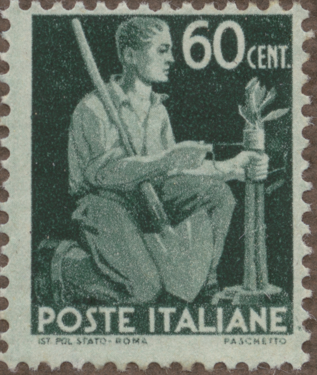 Frimärke från Italien, 1945. Motiv av ympning.