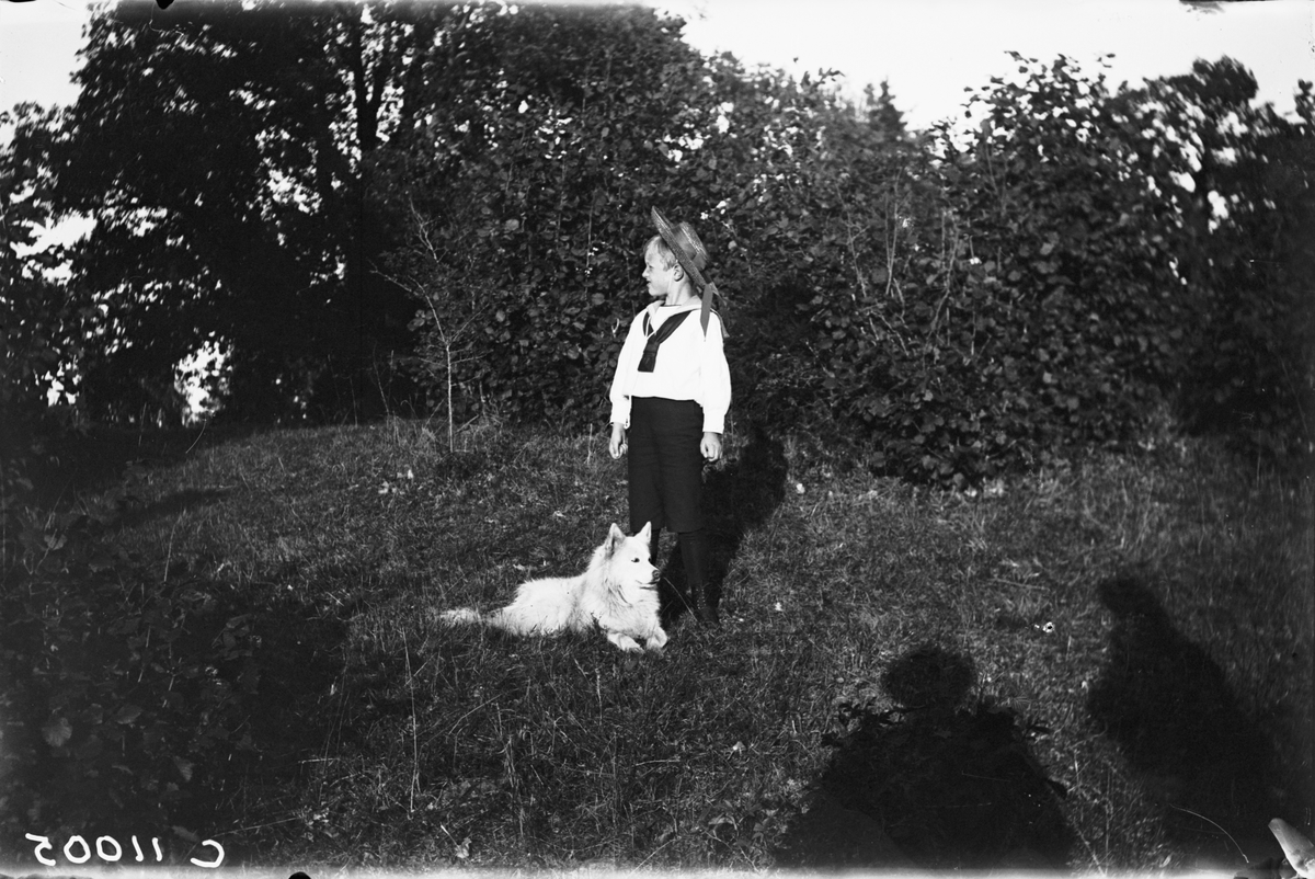Drottning Victorias bilder. Prins Erik lekande med hundar.