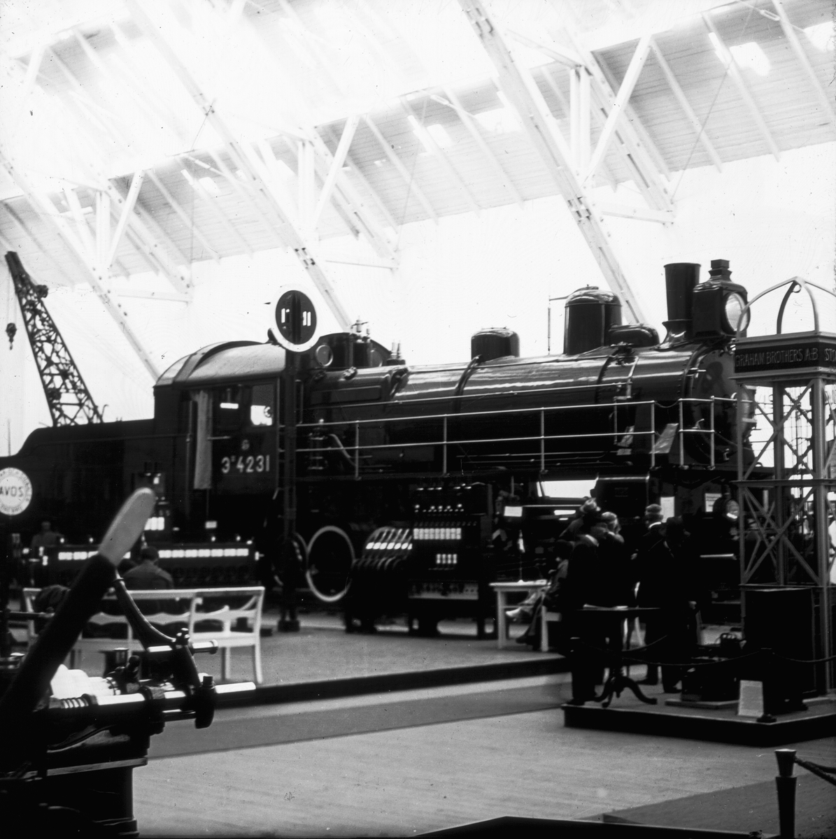 Skioptikonbild med motiv från Göteborgsutställningen 1923. Makinhall.