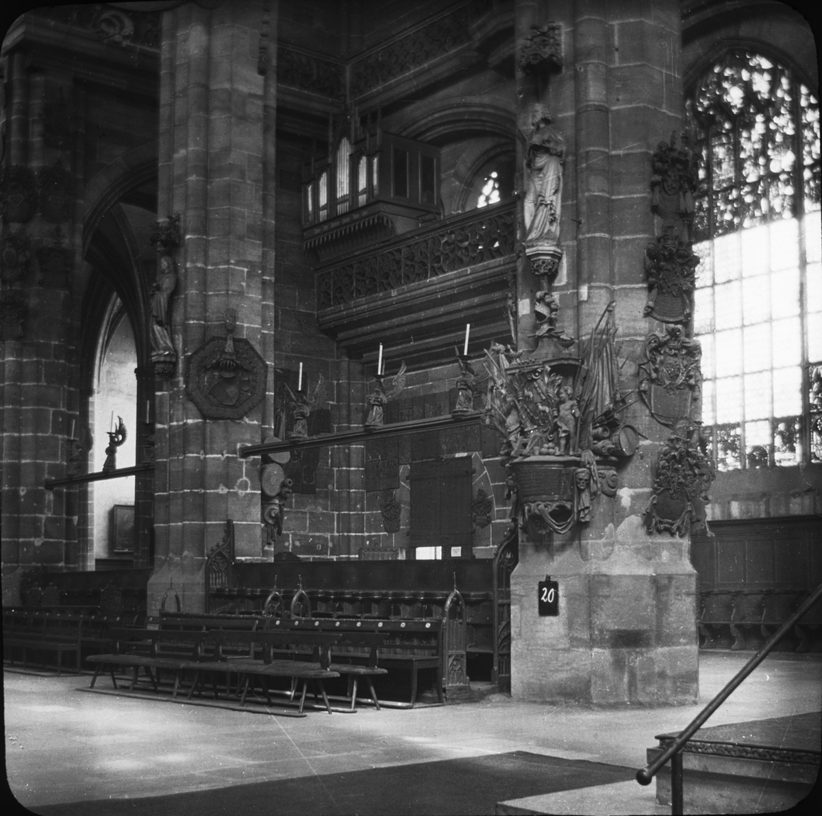 Skioptikonbild med motiv innifrån Lorentzkirche, Nürnberg.