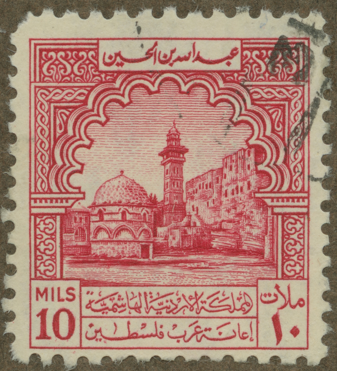 Frimärke från Jordanien 1947. Tempeldistriktet i Jerusalem.