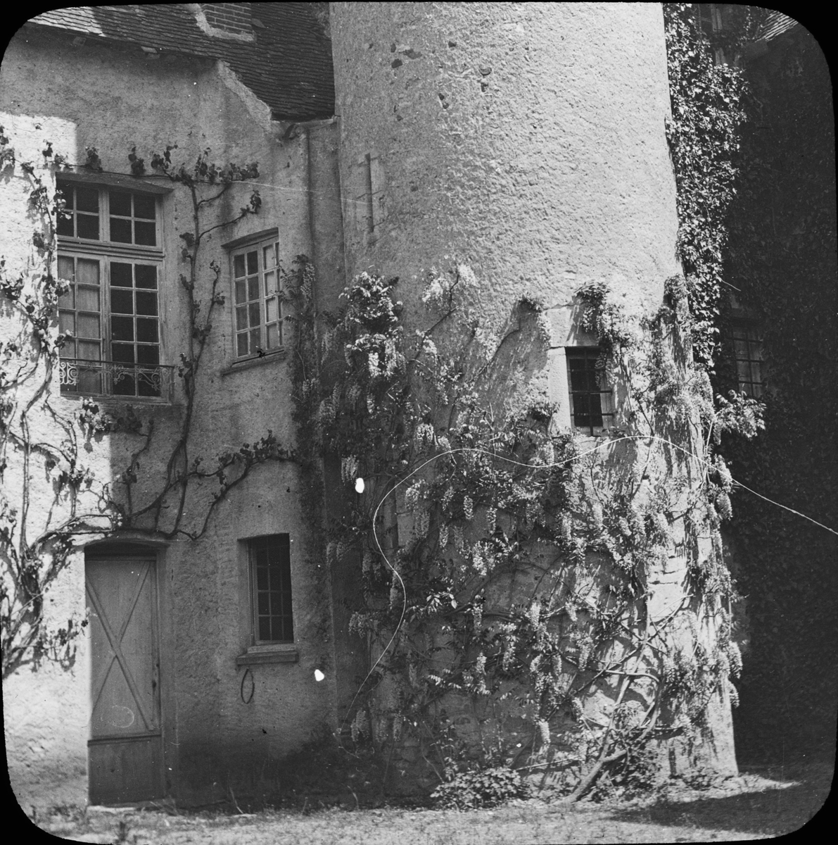 Skioptikonbild med motiv av klängväxt på hus i Vichy.