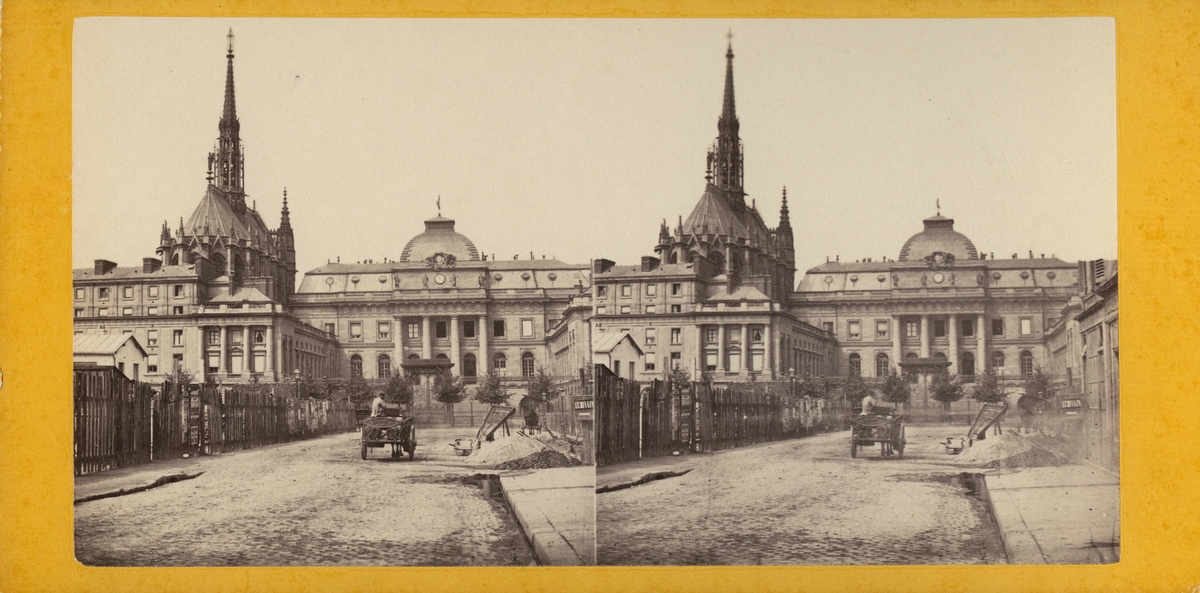 Stereobild med motiv av Justitiepalatset i Paris. På franska: Palais de Justice.