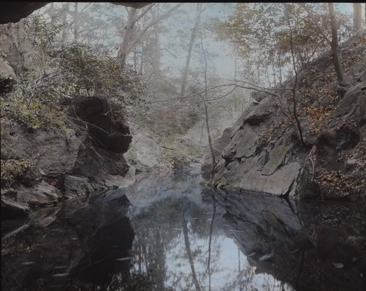 Kolorerad skioptikonbild med motiv okänt vattendrag.