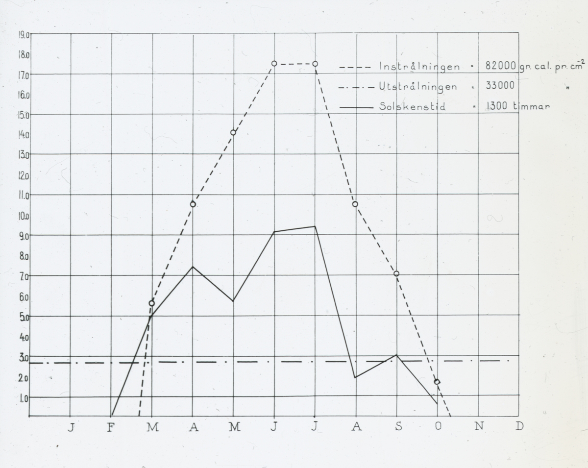 Glasnegativ med motiv av diagram över in- och utstrålning och solskenstid.