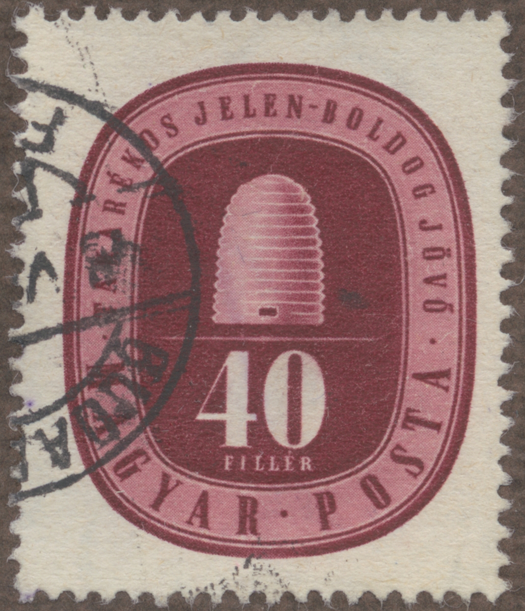 Frimärke från Ungern, 1947. Motiv av Bikupa Symbol för postsparbanken -Propaganda för Sparbanksdagen 31 oktober 1947-