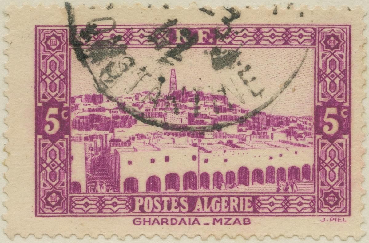 Frimärke från Fr. Algeriet, 1936. Motiv av Stadsbild från Ghardaia-Mzab