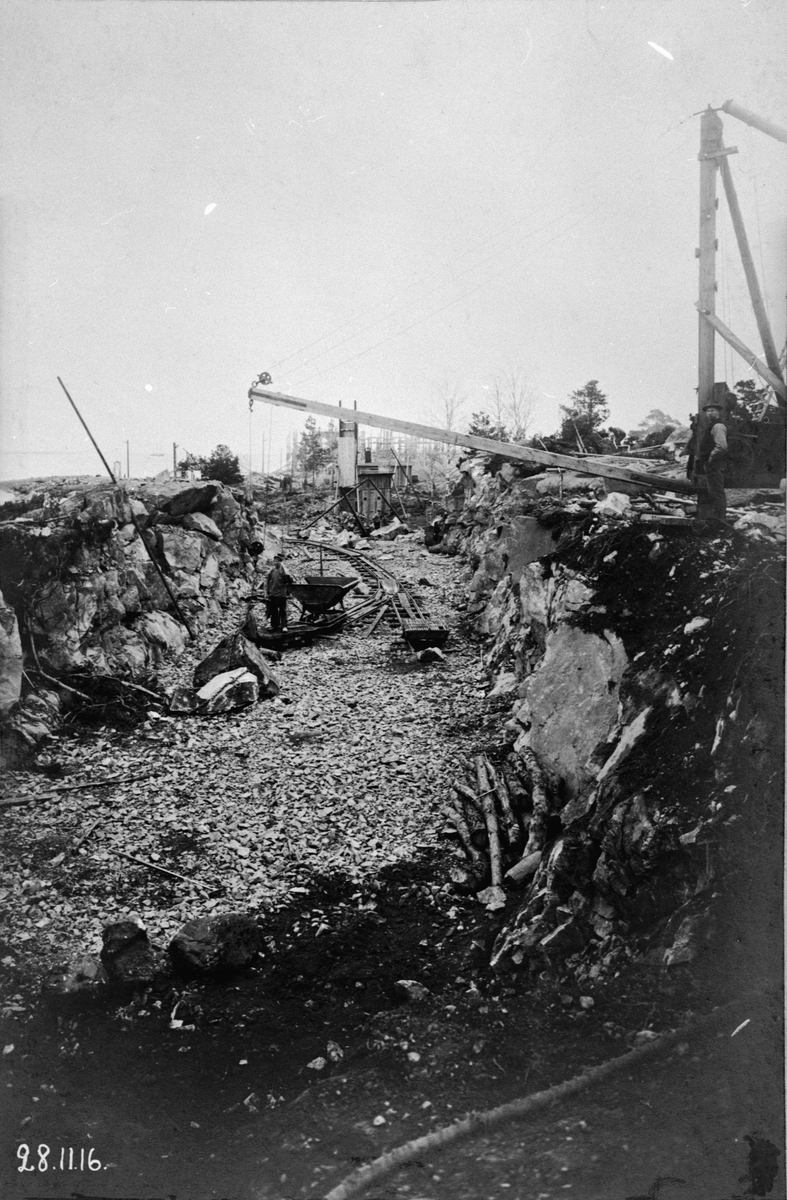 Byggherre: Byggnadsaktiebolaget Contractor, Stockholm. Oskarshamns Kopparverk, arbetsbild.