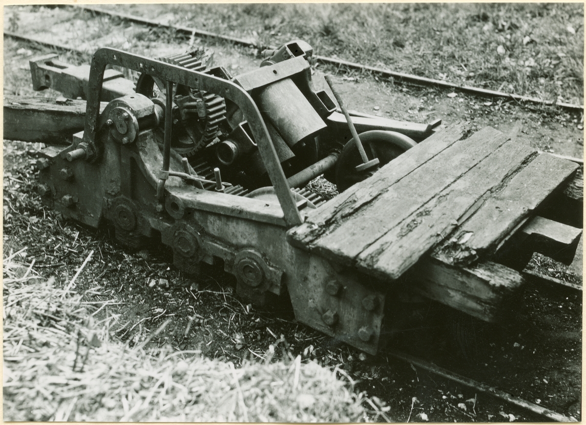 Resterna av Sveriges första elektriska lokomotiv, byggt 1890. Amerikansk konstruktion.
