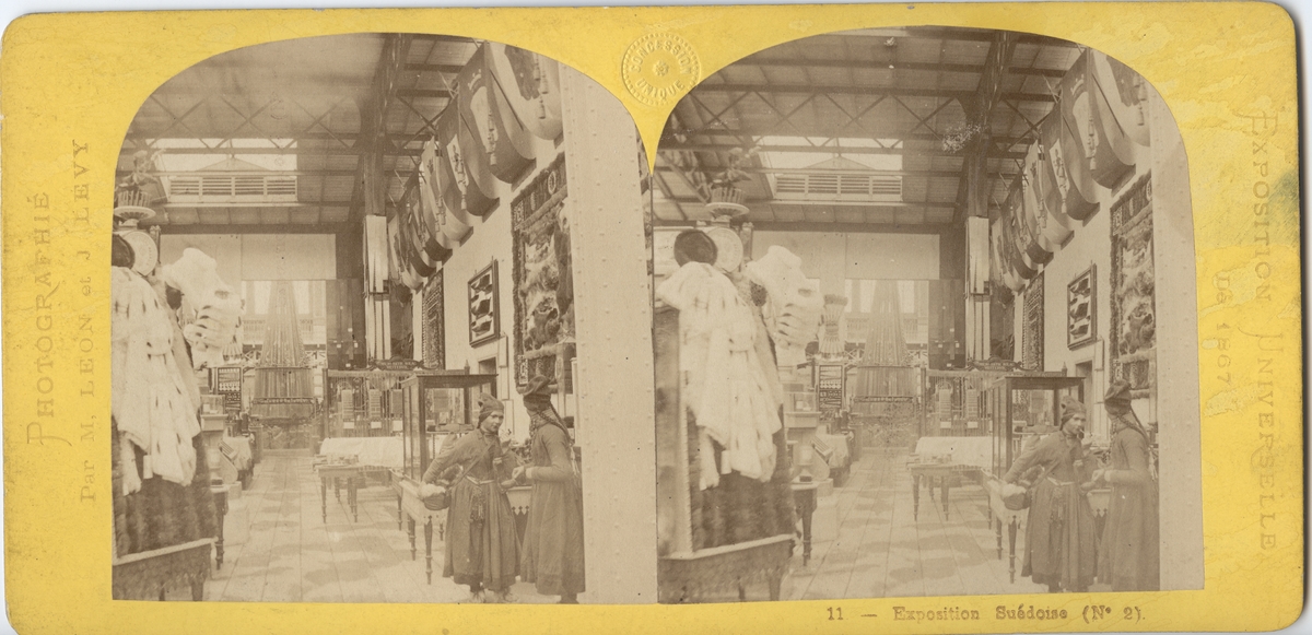 Stereobild med motiv av svenska paviljongen på Världsutställningen i Paris 1867.