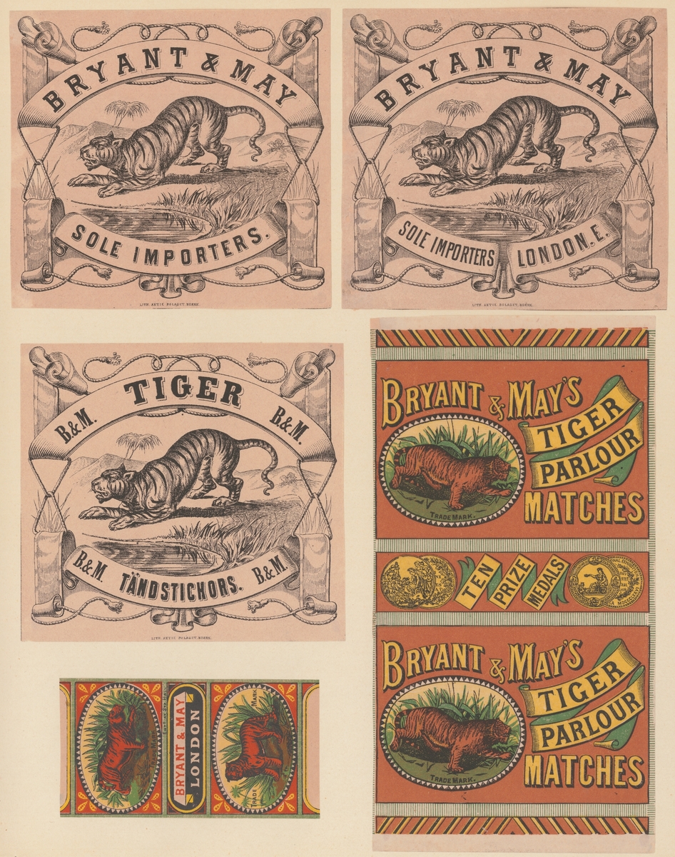 Etiketter för tändsticksaskar, från Svenskt Industri- och Handelsmuseum.