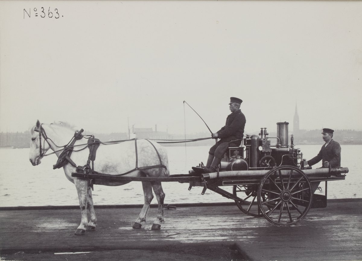 Produktbild från Ludwigsbergs Werkstad. Droska för brandsläckning. Ur album: Ludwigsbergs Werkstads Aktiebolag, Stockholm, Sverige.