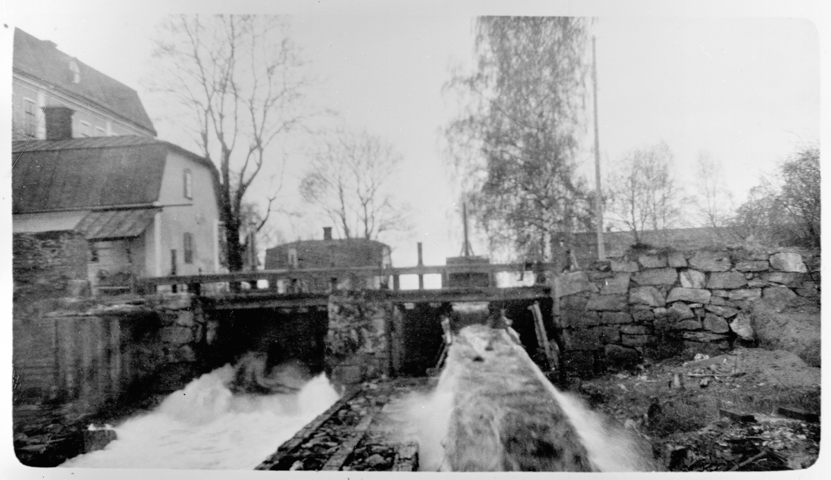 Vattenrännornas plats. Till vänster låg spiksmedjan, till höger lancashiresmedjan.