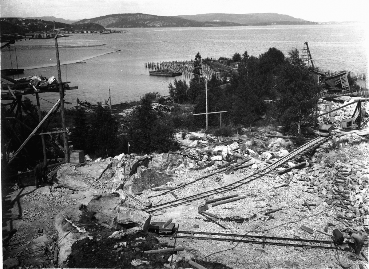 Titel: Byggherre: Byggnadsaktiebolaget Contractor, Stockholm. Sulfatfabrik i Dynäs i Ådalen för Sandvikens Cellulosa AB. Entreprenaden innefattade fabriksbyggnader, pir och massamagasin. Arbetsbild.
