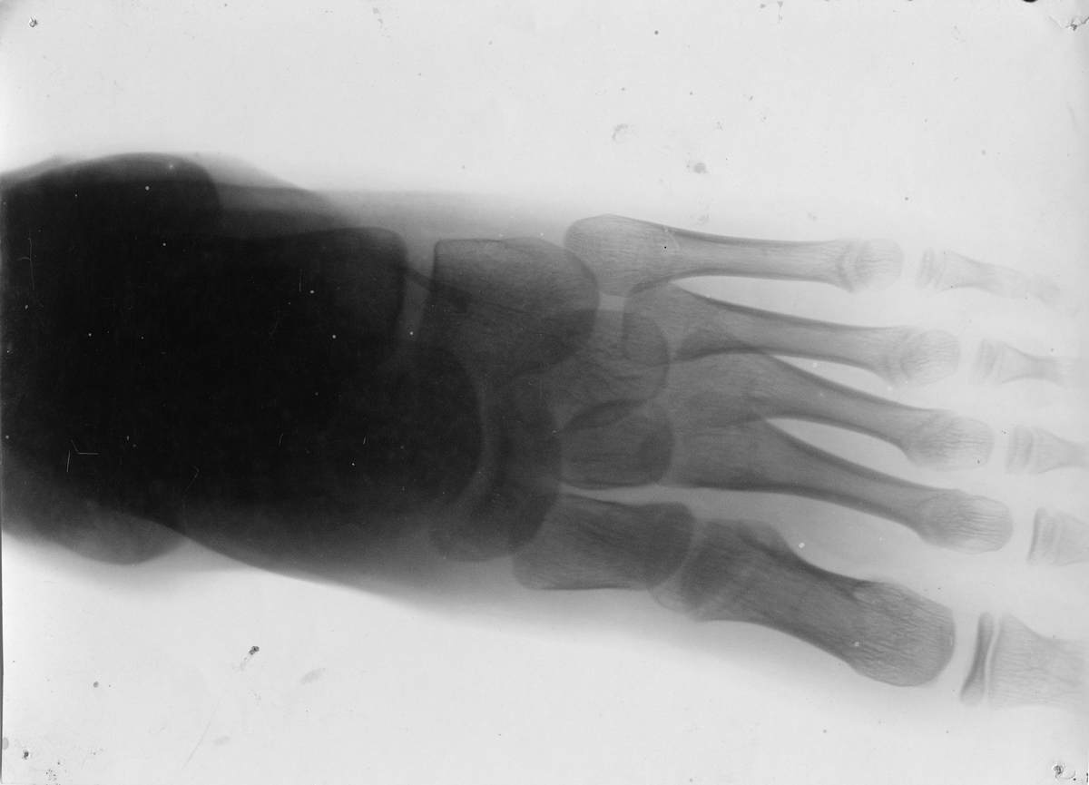 Röntgenfotografi av fot, taget av Oscar Karlowitch Larsson vid Åminne, Stäket eller Sockholm.