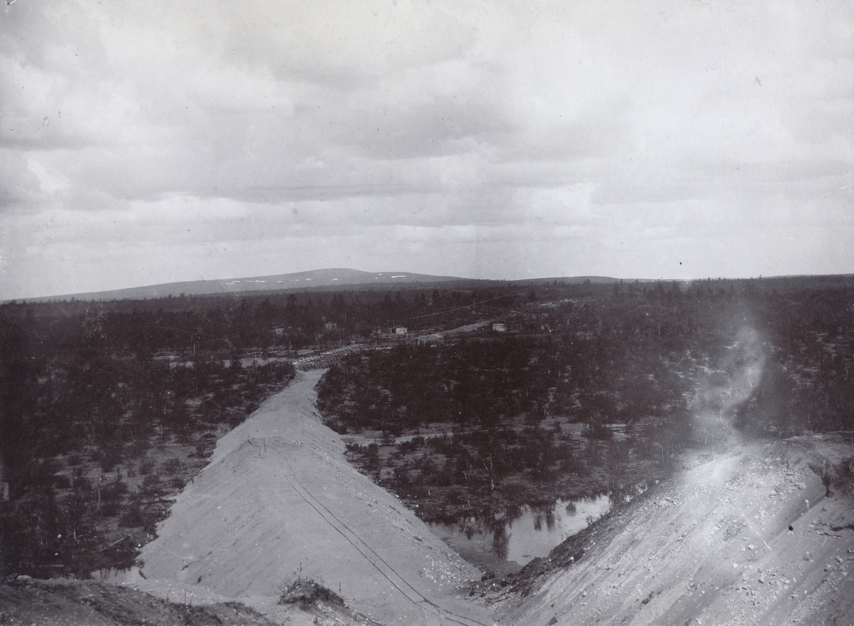 Vy över banvallen i Kajtumälvens dalgång.