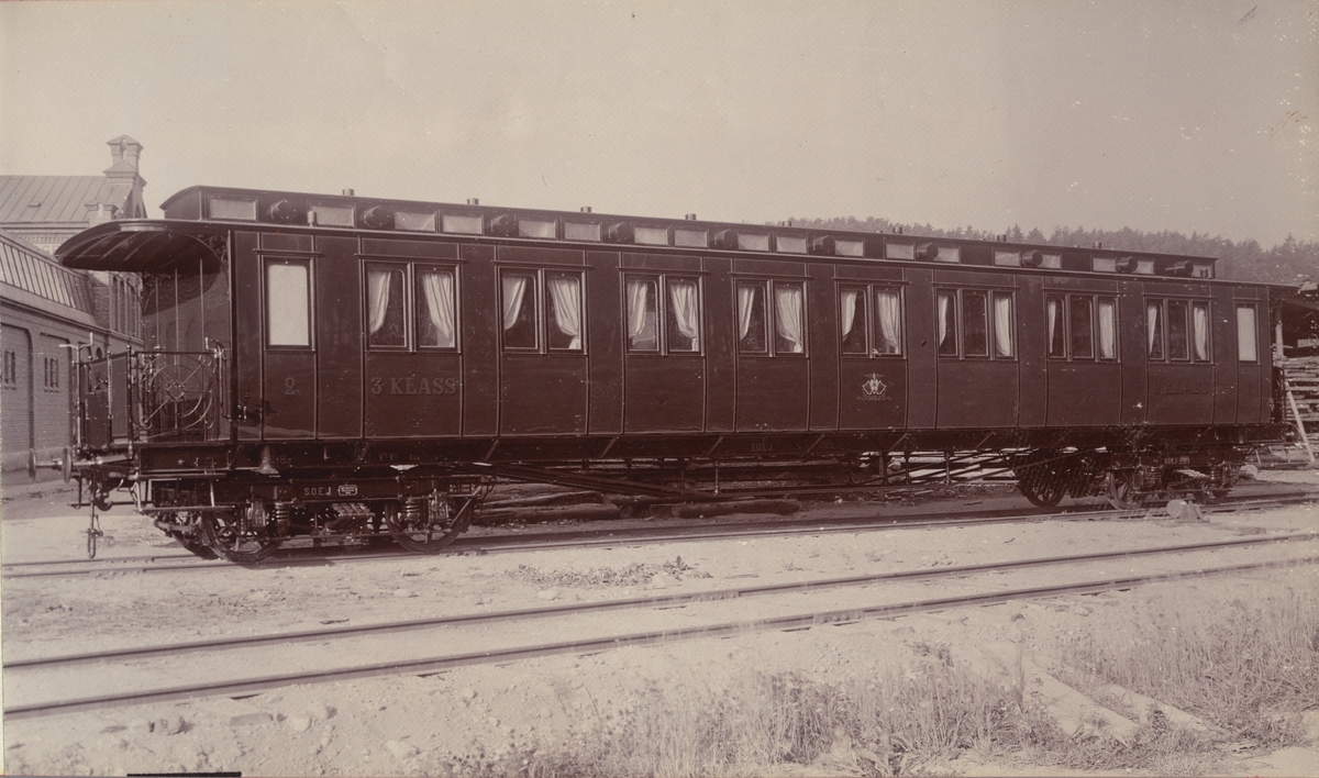 Tågvagn. 2:a och 3:e klass boggiepersonvagn. Vagnfabriks Aktiebolaget i Södertälge.
