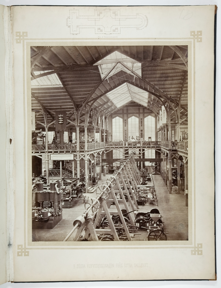 Fotografiska bilder från den första allmänna skandinaviska industriutställningen i Stockholm.