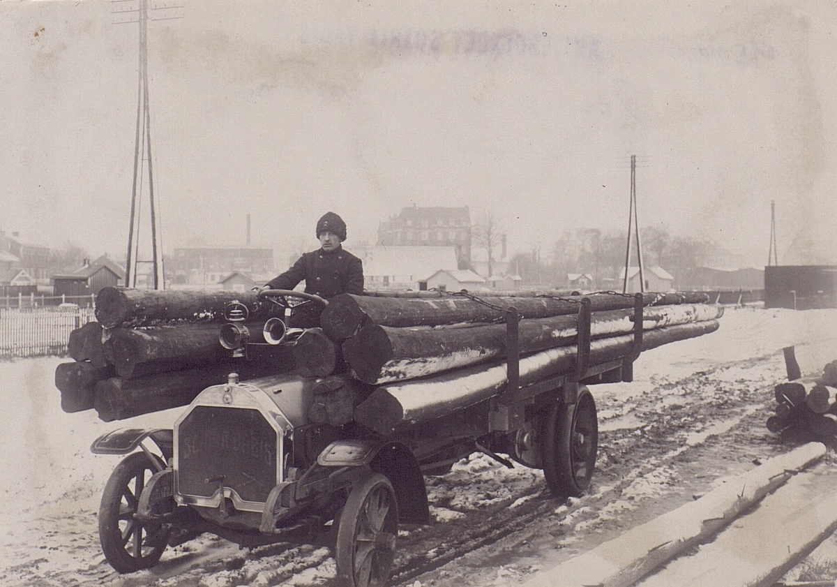 Transport med lastbil i bilismens barndom. Malmöområdet 1920.