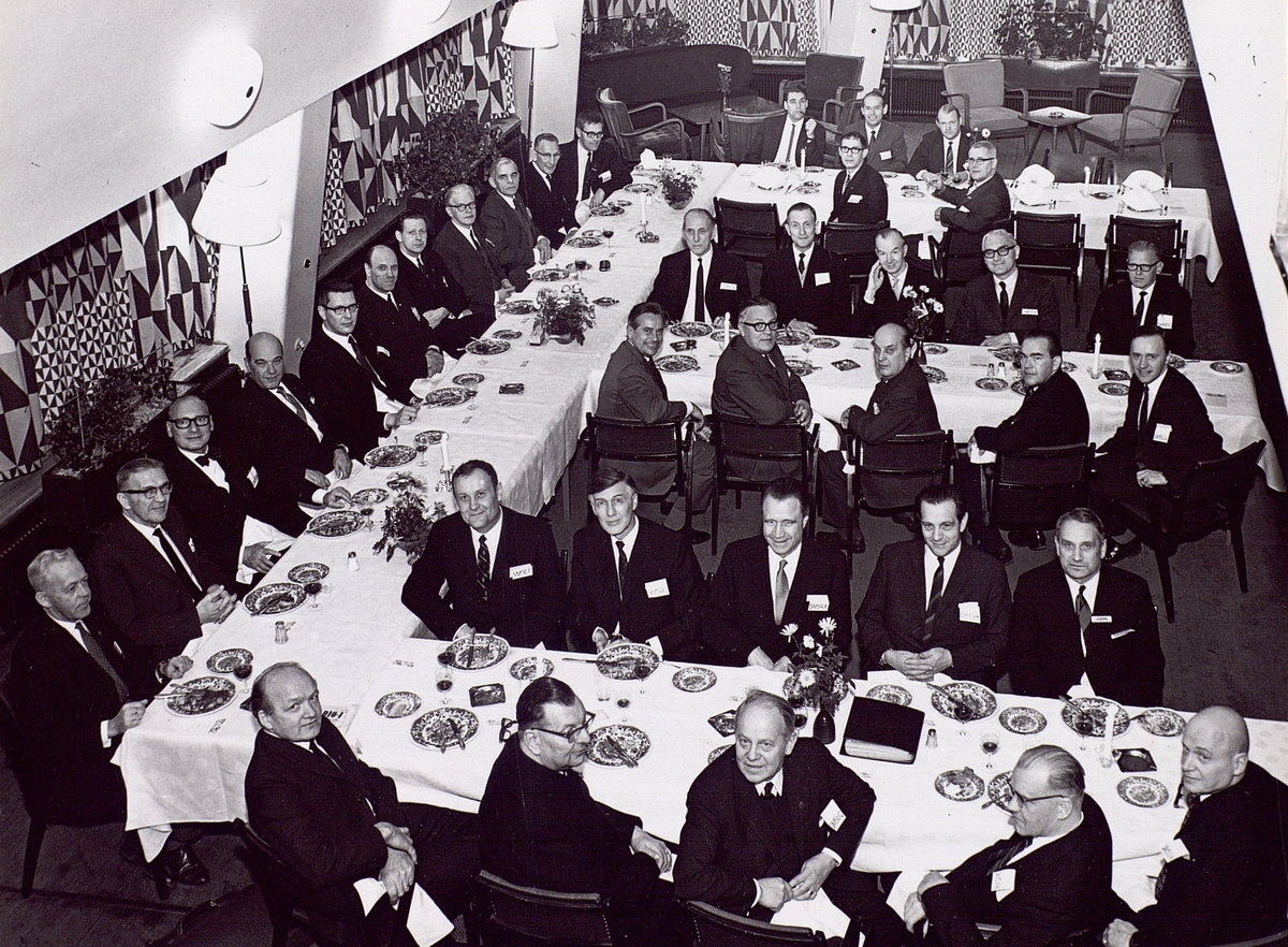 Sammankomst med Old-Timers-Club (OTC) på byggnadsföreningen våren 1969. OTC är en sammanslutning av äldre radioamatörer. Nr 2 fr.v. är Einar malmgren gäst vid sammankomsten.