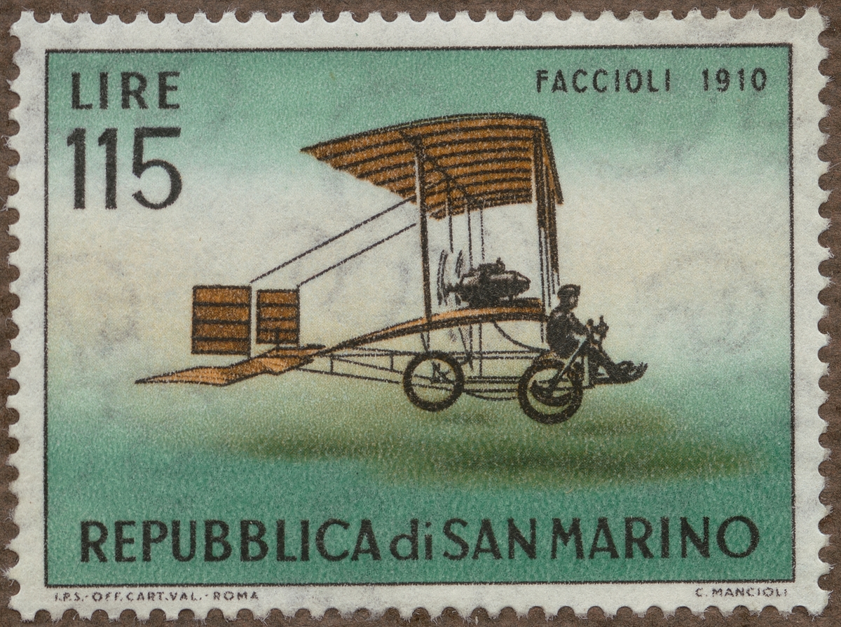 Frimärke från San Marino, 1962. Motiv av Faccioli: 1910 "Serie: Äldre flygplanstyper"